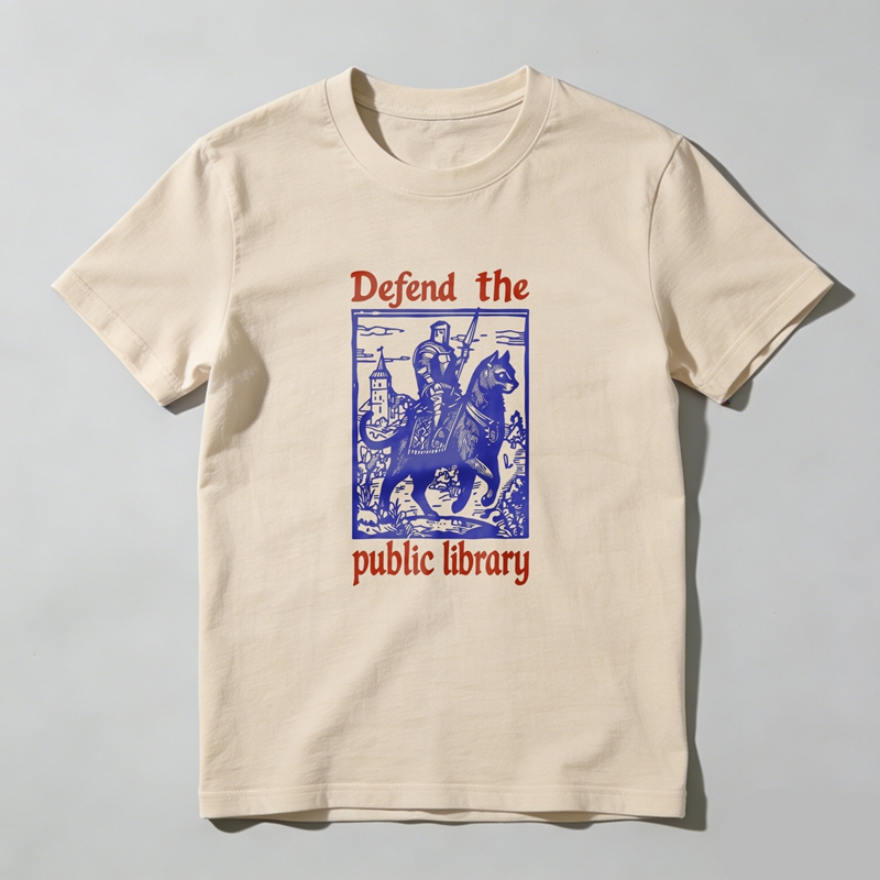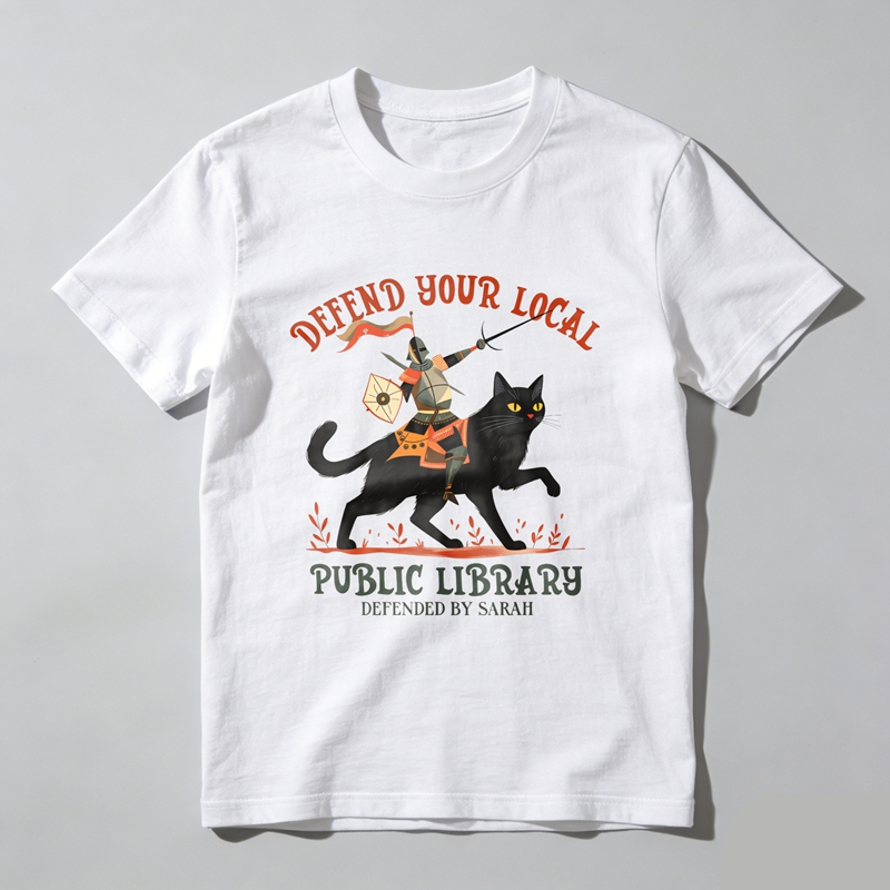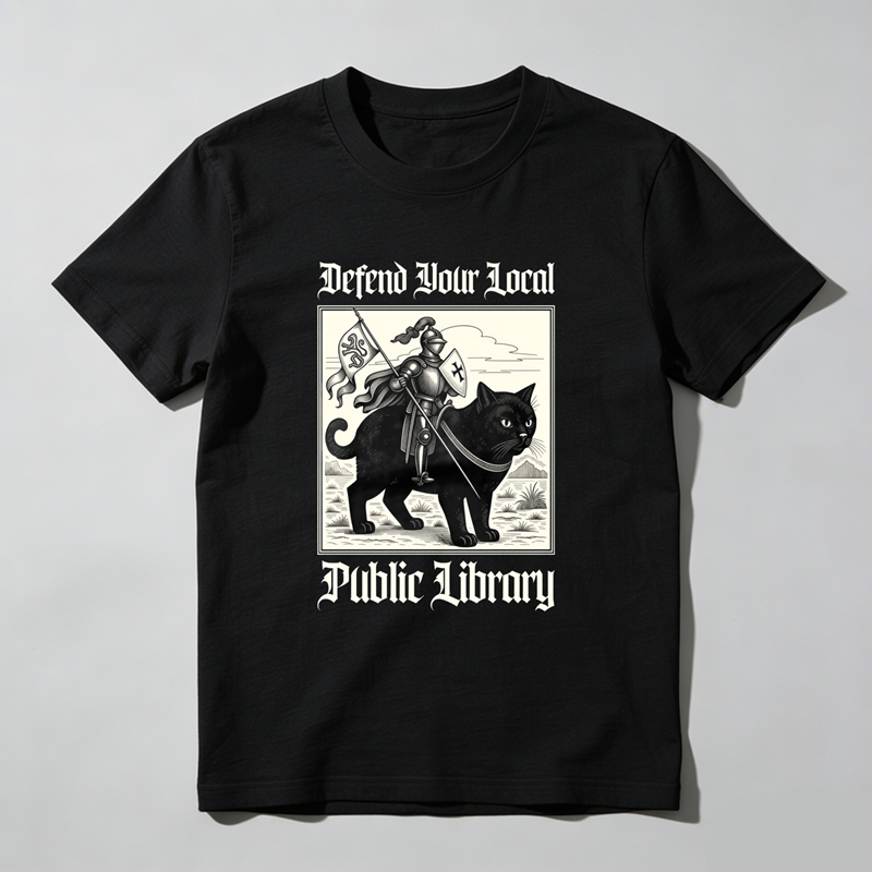 Wardrobecart Defend Your Local Public Library Cat Knight Tshirt