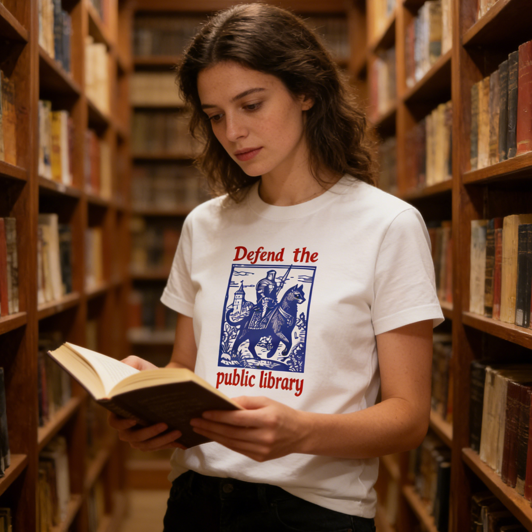 Wardrobecart Defend The Public Library Knight On Horse tshirt