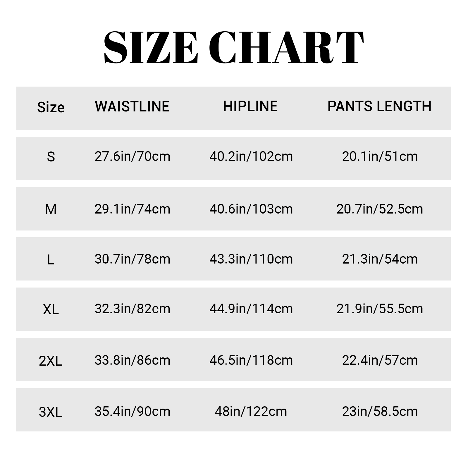 Size Chart: